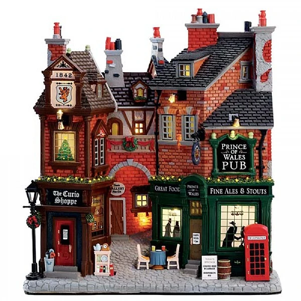 - There’s the Prince of Wales Pub with silhouettes of customers in the windows, The Curio Shop and a Gallery
