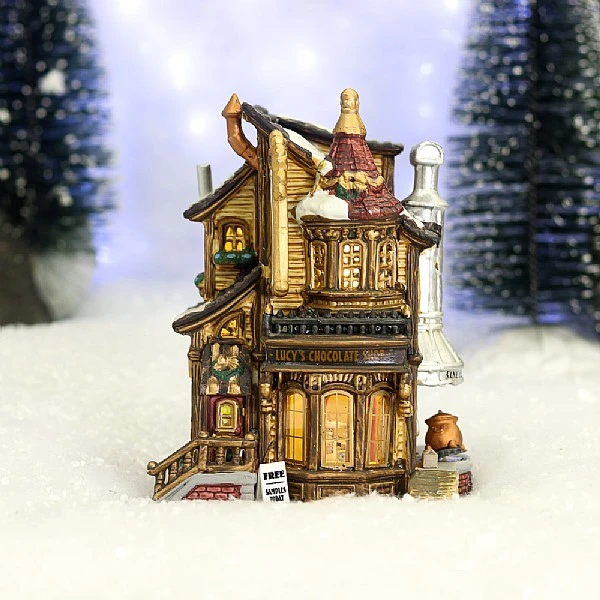 - What village is complete without a sweet shop? Lemax Lucy’s Chocolate Shop is a sweet addition for any Lemax village