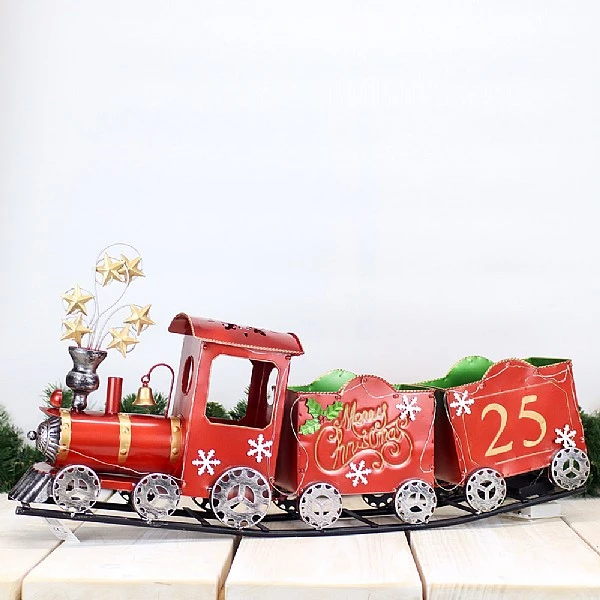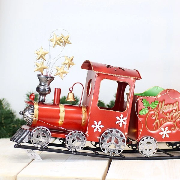 - Stunning red metal train on a rocking track with a vintage look and ‘Merry Christmas’ message