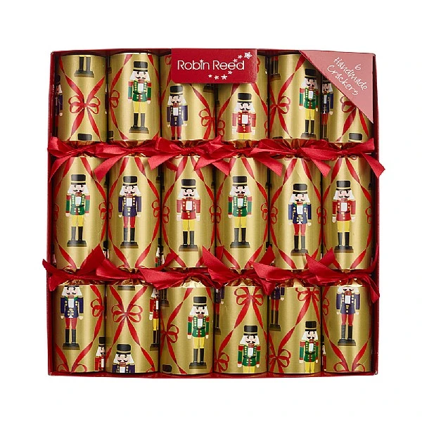 Why We Love It:Set of 6 handmade Christmas crackers made with gold paper with a colourful vintage nutcracker print, finished with red bowsContains hats, jokes, and fun giftsIdeal for the whole familySince 1975 Robin Reed has been hand crafting the finest English crackers with materials sourced from all over the world to give their Christmas crackers a unique style and quality