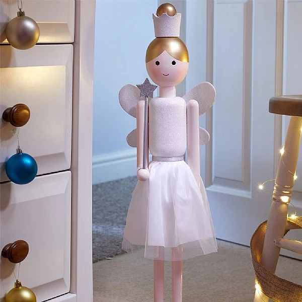 Why We Love It:This charming hand-painted wooden ornament takes inspiration from the classic Christmas nutcracker mixed with some fairytale magic to create a FairyCracker!Dressed all in white with gold hair, this FairyCracker will fit in with both modern and traditional décorMakes an impressive floor decoration at the foot of a staircase or Christmas treeHand-painted wood