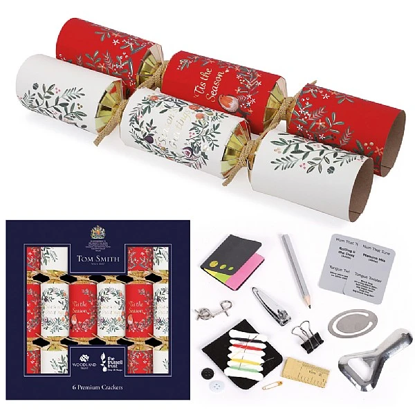 Why We Love It:Set of 6 premium Christmas crackers with a traditional design finished with natural hessian bowsContains a hat, motto and plastic-free giftFSC-certifiedTom Smith has partnered with the Woodland Trust to actively support a sustainable futureThe manufacturer also donates money to the Trussell TrustFully recyclable packagingSince 1906, Tom Smith has held the Royal Warrant as suppliers of Christmas crackers and wrapping paper to the monarch